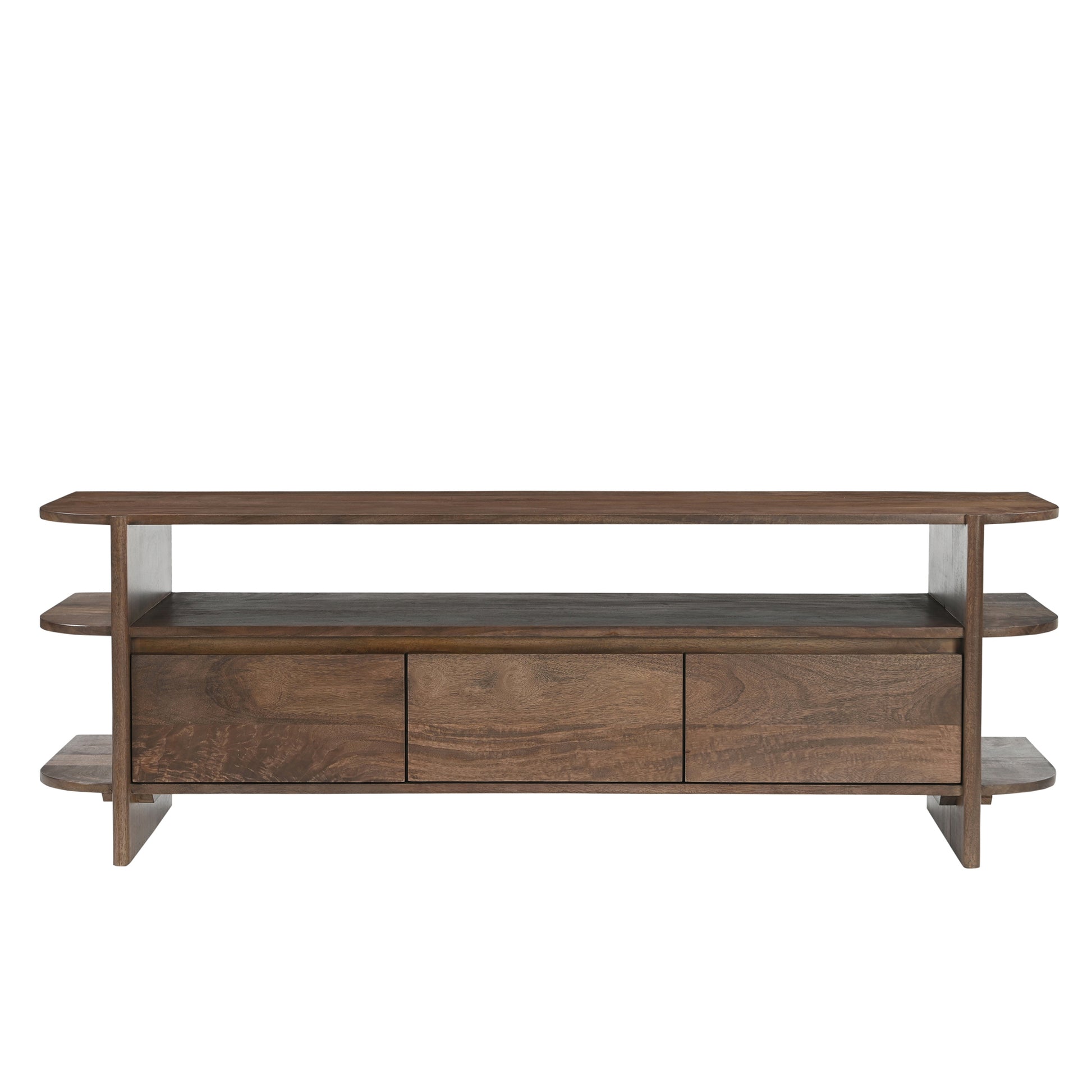 Deze Jade tv-kast is een stijlvolle en functionele kast, vervaardigd uit massief mangohout, bekend om zijn duurzaamheid en unieke houtstructuur. De kast is beschikbaar in twee afmetingen en komt in drie verfijnde kleuren: walnoot bruin, creme wit en naturel. Dankzij het open vak, de zijplanken en de drie ruime lades biedt deze kast zowel voldoende opbergruimte als een elegante plek voor je televisie en media-apparatuur. Het minimalistische, doch warme design past perfect in zowel moderne als landelijke interieurs.