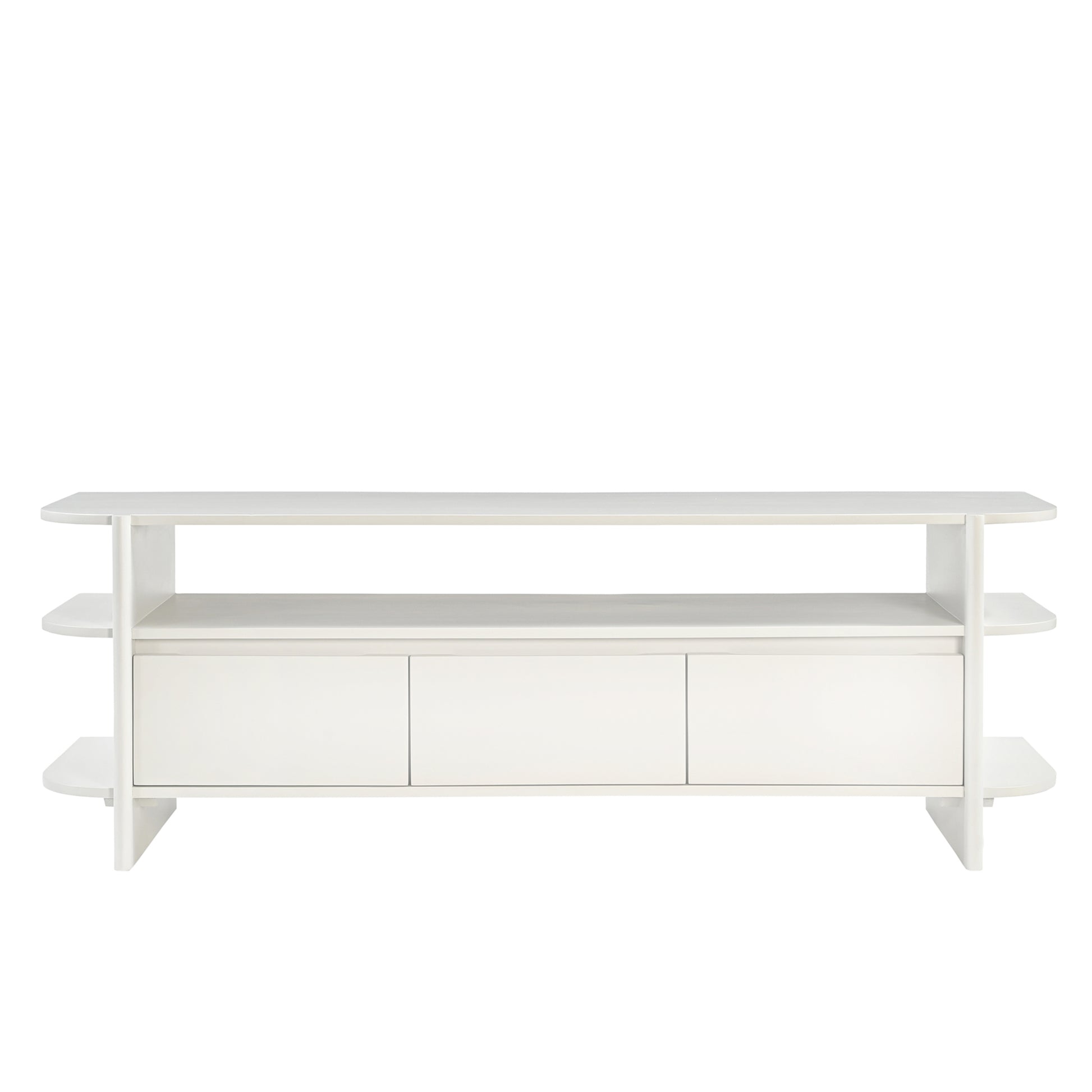 Deze Jade tv-kast is een stijlvolle en functionele kast, vervaardigd uit massief mangohout, bekend om zijn duurzaamheid en unieke houtstructuur. De kast is beschikbaar in twee afmetingen en komt in drie verfijnde kleuren: walnoot bruin, creme wit en naturel. Dankzij het open vak, de zijplanken en de drie ruime lades biedt deze kast zowel voldoende opbergruimte als een elegante plek voor je televisie en media-apparatuur. Het minimalistische, doch warme design past perfect in zowel moderne als landelijke interieurs.