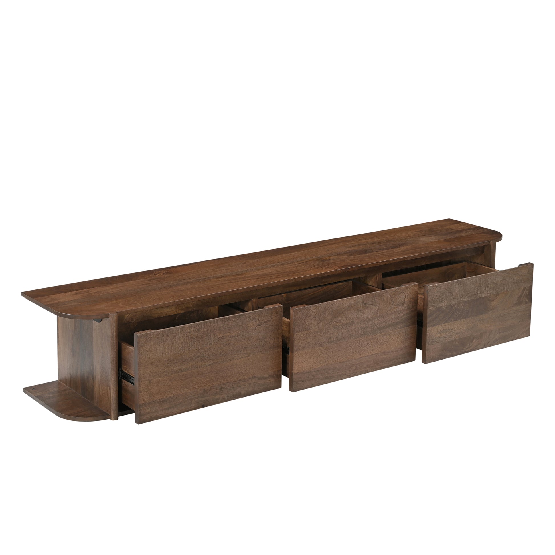 Deze Jade tv-kast met ophangsysteem is stijlvol en functioneel, vervaardigd uit duurzaam mangohout. Verkrijgbaar in twee formaten en drie kleuren -walnoot bruin, creme wit en naturel- past zij moeiteloos in diverse interieurs. Het zwevende design geeft een moderne, luchtige uitstraling en zorgt voor extra vloerruimte naar keuze.